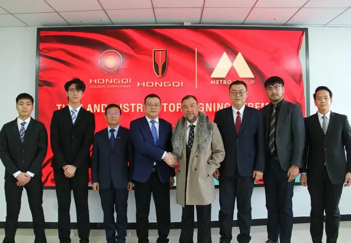 เมโทร กรุ๊ป ลงนามข้อตกลงความร่วมมือกับบริษัท China FAW Group Import & Export จำกัด รับการแต่งตั้งเป็นผู้จัดจำหน่าย “HONGQI” (หงษ์ฉี) รถยนต์ระดับหรูที่เป็น “แบรนด์ประวัติศาสตร์” ของจีนอย่างเป็นทางการในประเทศไทย ณ เมืองฉางชุน สาธารณรัฐประชาชนจีน ครอบคลุมความร่วมมือเชิงกลยุทธ์ในด้านต่างๆ ได้แก่ การแต่งตั้งผู้แทนจำหน่ายในประเทศ การสร้างแบรนด์ การขาย การส่งเสริมการตลาด และบริการหลังการขาย นับเป็นอีกหนึ่งความเคลื่อนไหวครั้งประวัติศาสตร์ของวงการยานยนต์ไทย เมื่อแบรนด์รถยนต์ที่เก่าแก่จนเป็นตำนาน และทรงเกียรติที่สุดของสาธารณรัฐประชาชนจีนจะเข้ามาทำตลาดในประเทศไทย